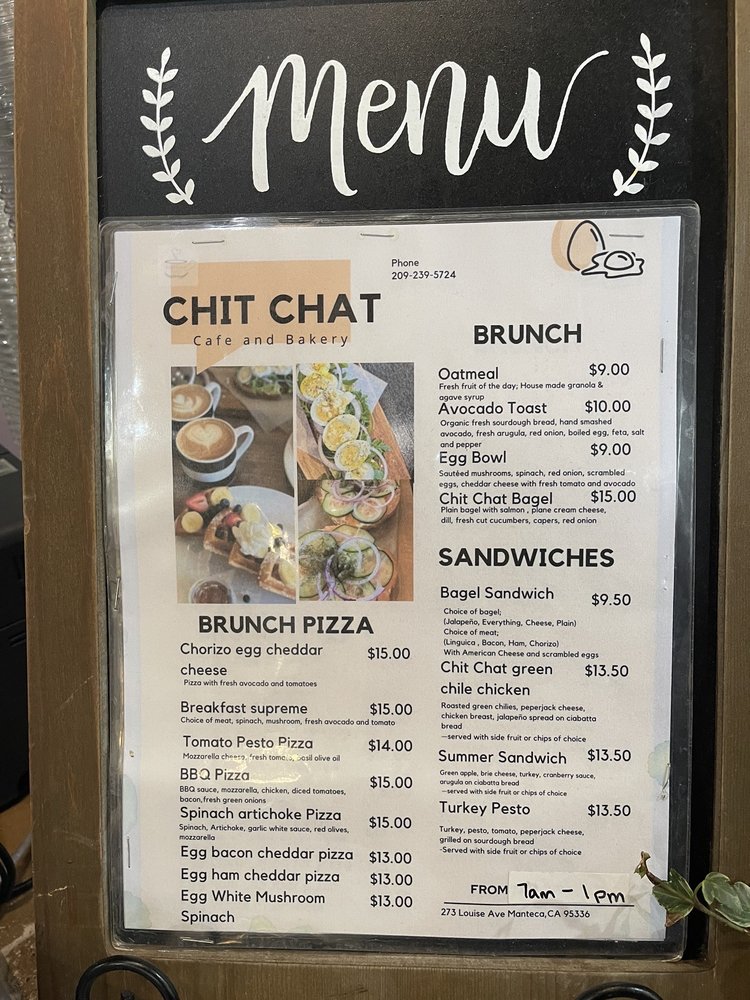 Welcome to Chit Chat Cafe Manteca, a delightful spot for breakfast and brunch located at 273 W Louise Ave, Manteca, CA. This cozy cafe offers a menu designed to spark joy, featuring savory selections like Mushroom Spinach and Chicken Pesto California sandwiches, perfect for starting your day right.
